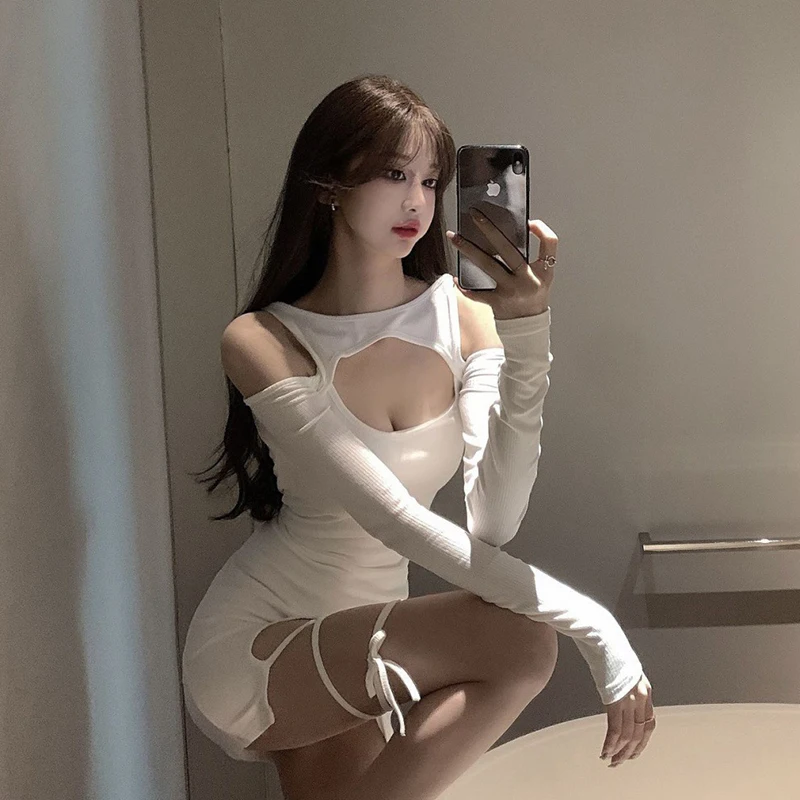 Women Mini Dress Lace Up Bandage Autumn Slim Long Sleeve Short Dresses Hot Sexy Hollow Out Elegant Vestidos Clothes best online shop womenshophouse free shipping